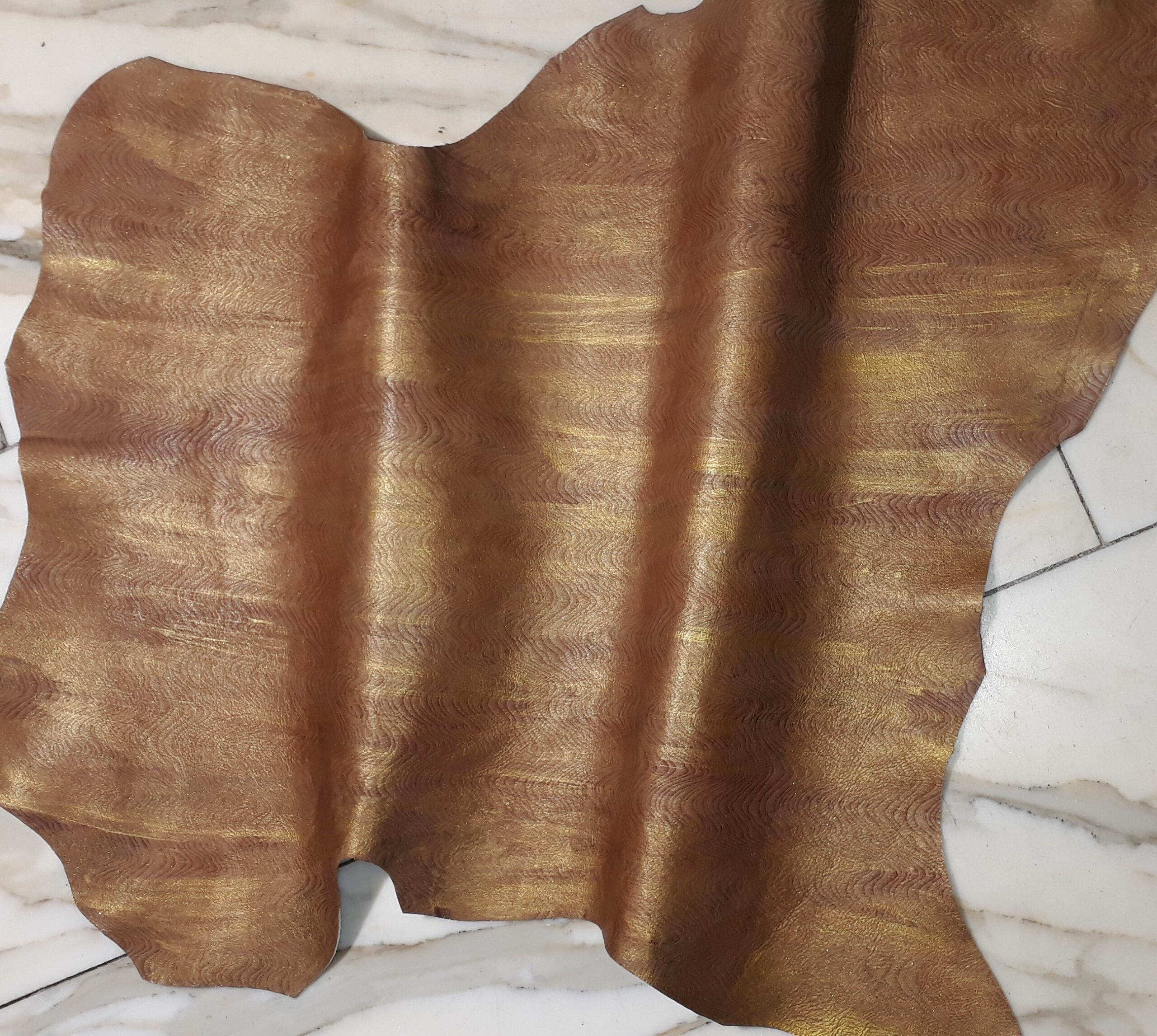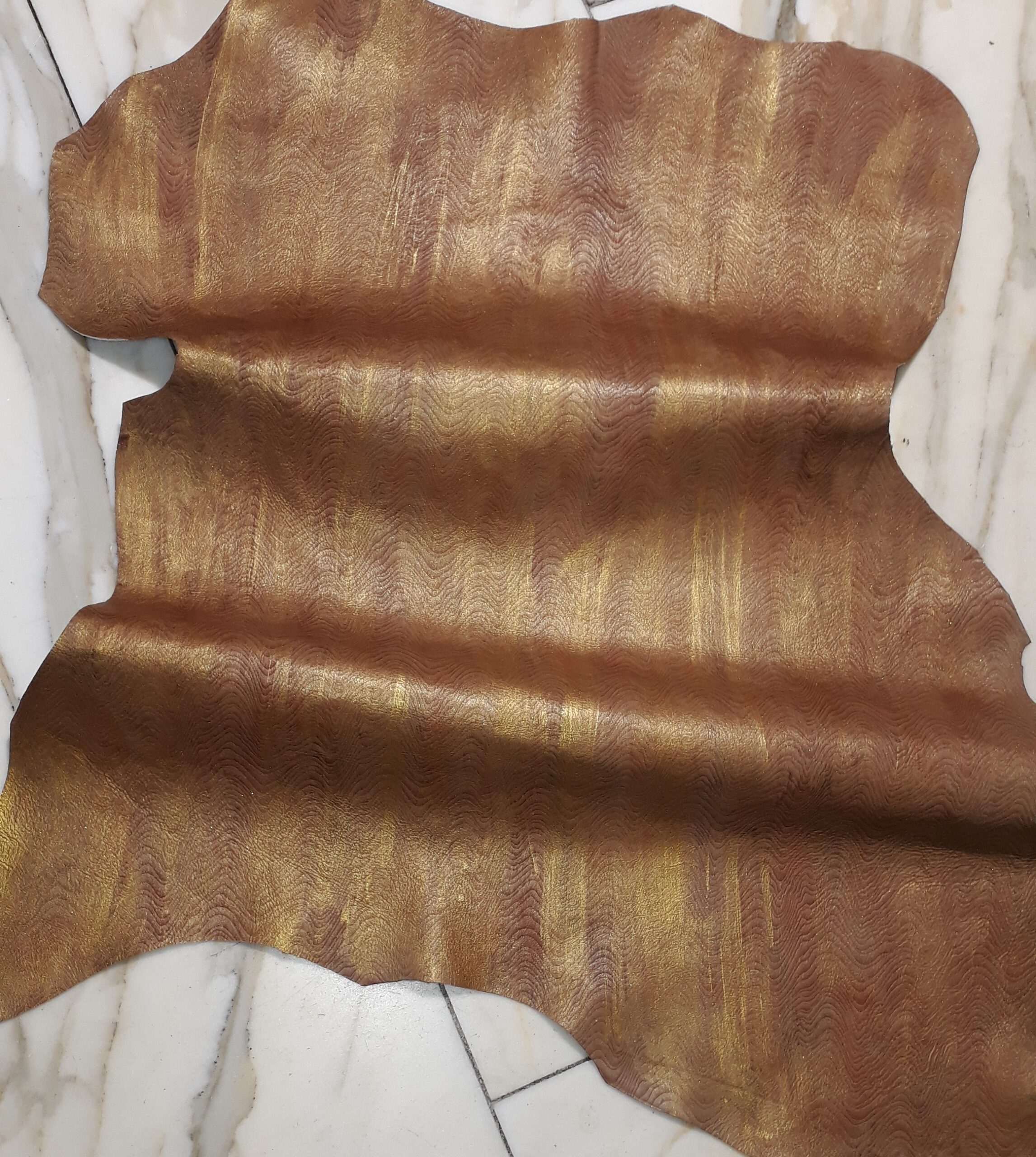 1x Lederhaut (SC-1445), altgoldfarben, 0,8mm, geprägt & handbemalt